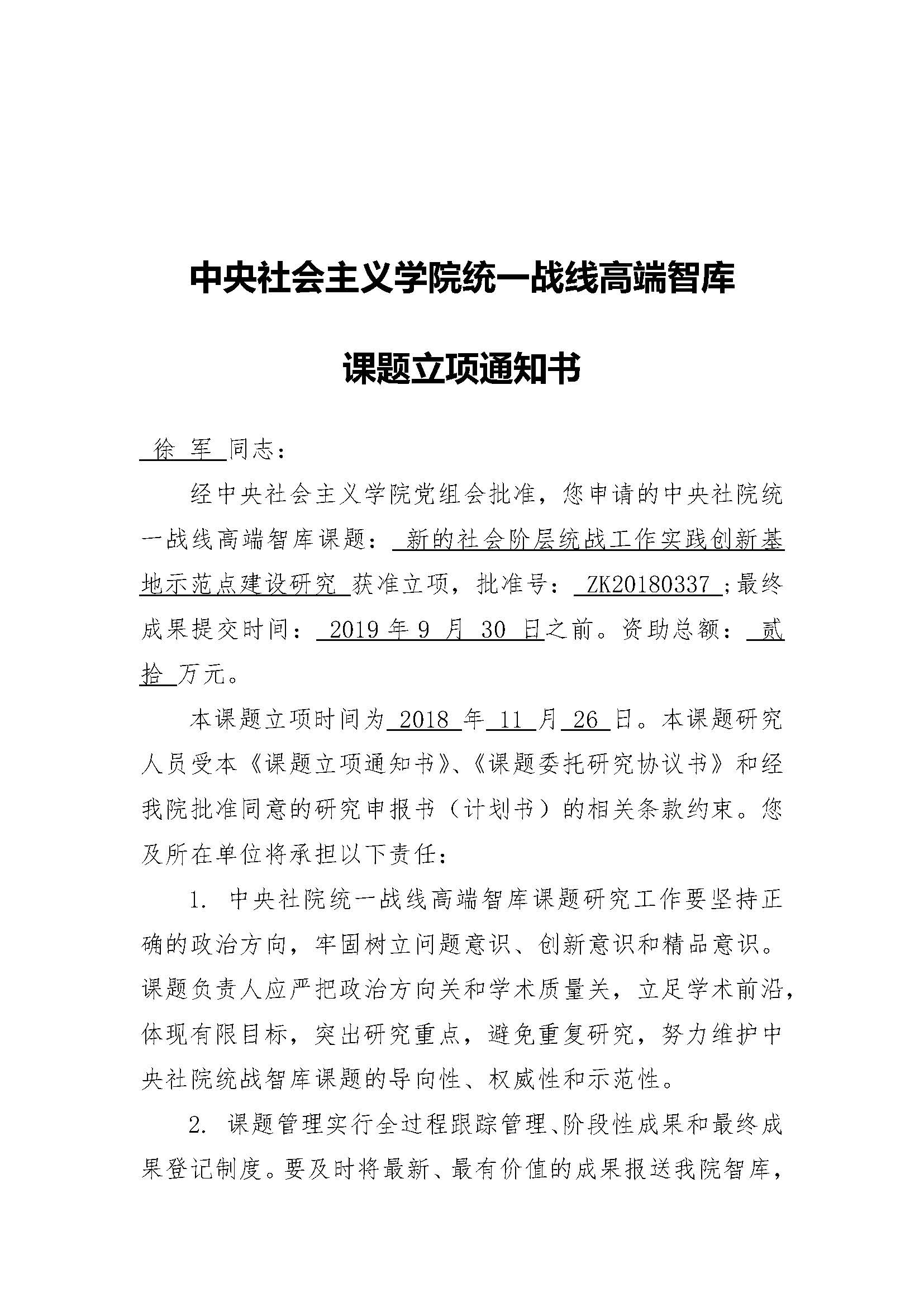 近日,武汉社院申报的“新的社会阶层统战工作实践创新基地示范点建设研究”顺利获得中央社院统一战线高端智库一类课题立项,获得资助20万元,刷新了我院科研项目立项级别和获助资金的新记录。