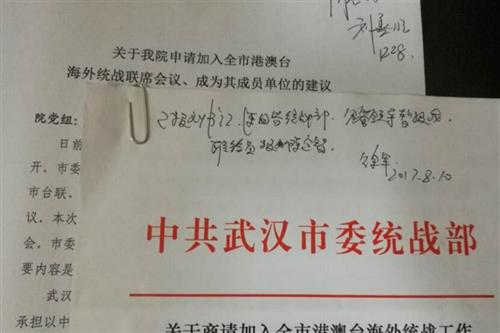 日前,经武汉市委统战部批复同意,武汉中华文化学院正式加入扩容后的“全市港澳台海外统战工作联席会议”机制,成为其第二批成员单位。武汉中华文化学院自去年底开始,经过半年多的申请和努力,成功被纳入到全市海外统战工作的大盘子里。