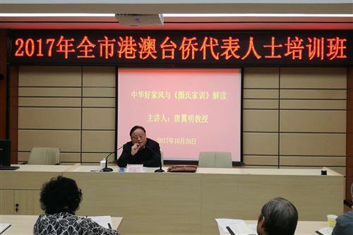 10月26日,武汉市中华文化学院(市社会主义学院)邀请知名文化学者唐翼明教授来院,作《中华好家风与〈颜氏家训〉解读》的文化讲座。