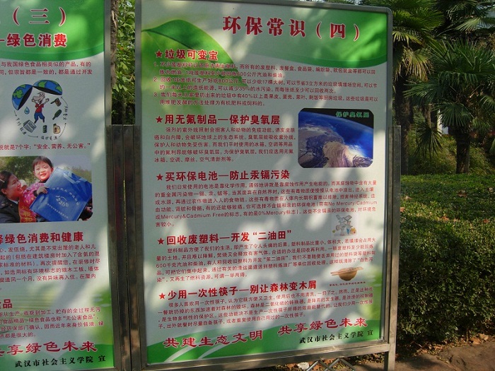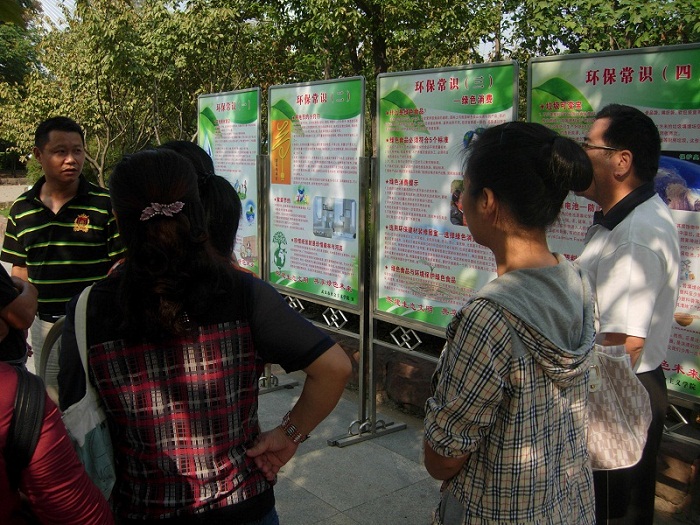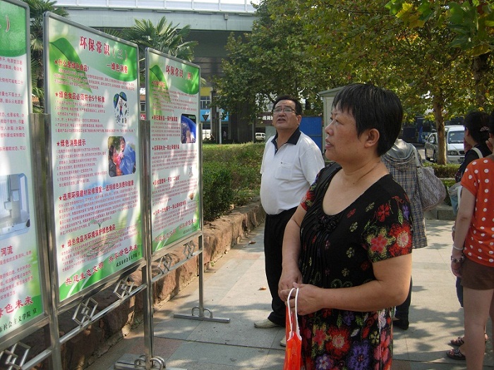2012年9月27日,武汉市社会主义学院学雷锋环保志愿服务队在田田广场开展“地球是我家,环??看蠹摇被繁P疃?,用图文并茂的环保宣传画向发展社区居民介绍各类低碳生活的小窍门。