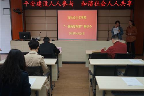 据市综治办有关通知精神,4月24日,市社会主义学院召开全体干部职工大会,开展“一感两度两率”(群众安全感,社会治安满意度、政法机关公正执法满意度,平安创建活动知晓率、参与率)测评工作,扩大学院干部职工对平安建设的知晓率和参与率。