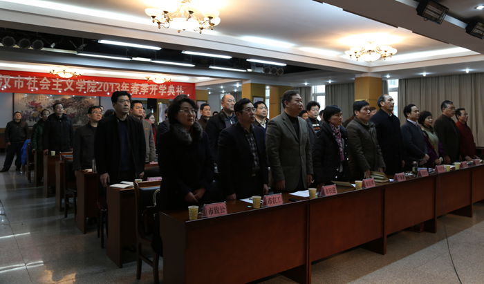 ?? 市社会主义学院于3月1日下午在学院学术报告厅举行了2013年春季开学典礼,此次开学典礼与中央社院2013年春季远程视频开学典礼同步举行。市委统战部常务副部长胡继堂出席开学典礼。