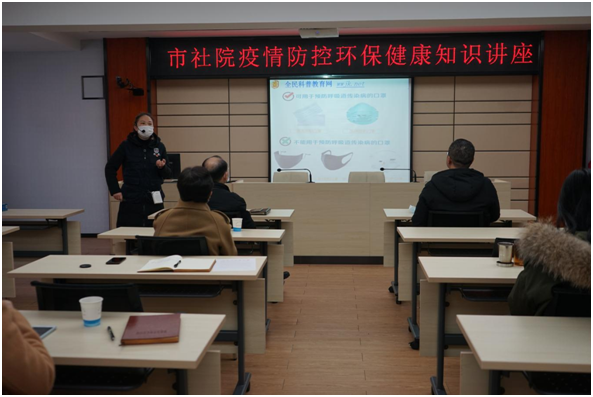 2020年12月28日,为了加强单位文明创建工作,提升大家的社会文明素质,普及低碳环保、垃圾分类和常态化疫情防控健康知识,市社院邀请全民科普教育网的汪娟老师进行相关知识讲解。学院党组副书记杨学文、副院长徐辉及全院干部职工、部分物业人员参加了本次讲座。