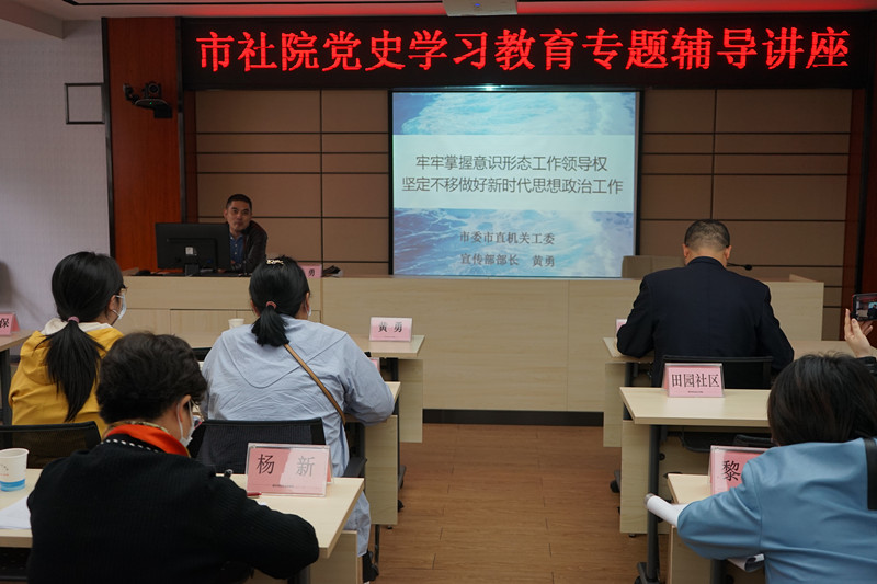 辅导报告由市社会主义学院党组成员、副院长徐辉主持。徐辉指出,黄勇同志的报告结合形势紧密、事例充分、数据详实、实践经验足,具有较强的指导性和针对性,为市社院抓好党的宣传思想和意识形态工作提供了方法指导,拓展了党史学习教育的范围,丰富了党史学习教育的内容,有助于学院更好地履行“统一战线性质的政治学院”职能,较好地发挥“统战人才教育培养的主阵地”作用,为加快打造“五个中心”建设现代化大武汉履职服务。市社会主义学院全体党员干部职工参加了集中学习。