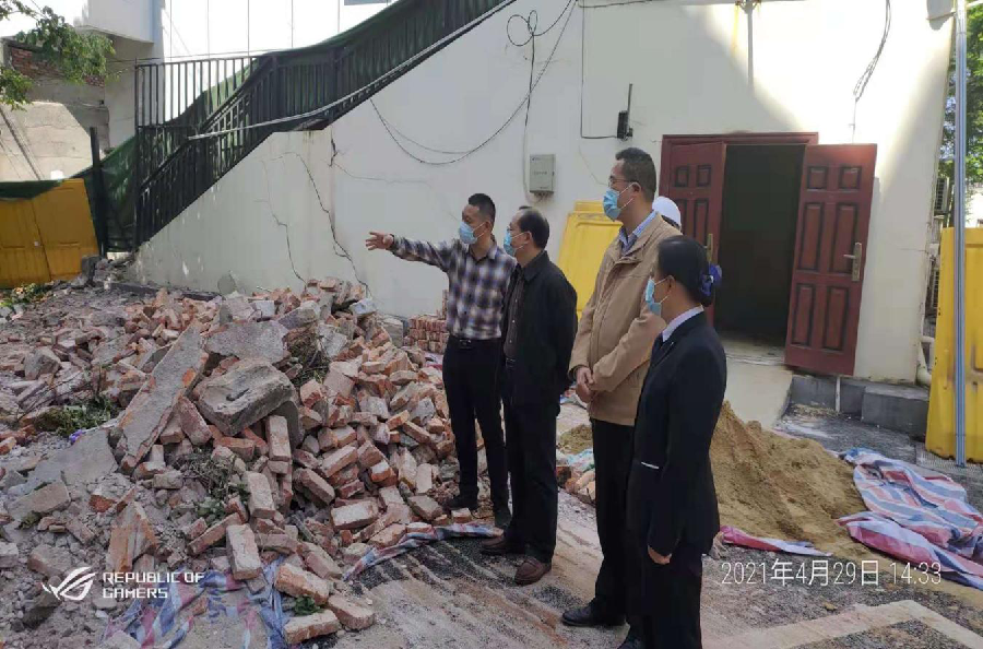 杨书记强调,一是节假日期间要慎终如始抓好疫情防控,绝对不可放松疫情防控之弦;二是大院围墙的改造一定要提前与周边单位及社区居民进行良好沟通,尽量避免施工给其造成麻烦,也要防止发生安全事故给居民造成人身以及财产的损失;四是加强现场管理,牢牢守住安全生产底线,特别是“五一”期间更要落实到位,提前做好应急预案,以应对现场可能会发生的问题;五是强化值班备勤,值班人员要落实责任,要熟知应急预案流程,如若发生安全问题应及时报告院领导处理。