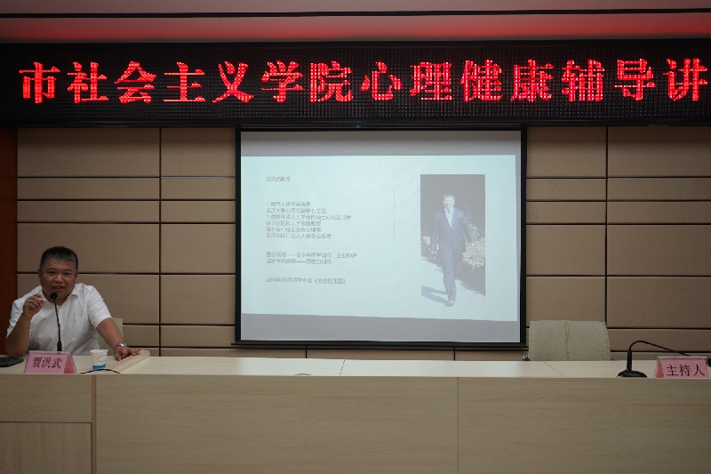 为加强学院精神文明建设,7月15日,院机关党委、院工会联合举办一场心理健康辅导讲座,邀请心理咨询师、民建会员贾洪武为全院干部职工作“党员干部心理调适”讲座。