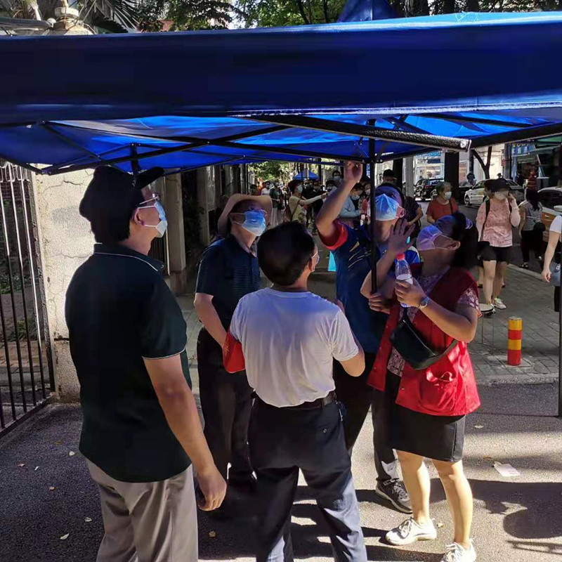 8月4日凌晨,院机关党委向全院同志发布动员预告,号召全院党员干部职工保持手机通信畅通,不分“八小时”内外,统一听从调遣,认真做好迎战下沉社区准备。当日早晨,市社会主义学院分管副院长徐辉,带领第一批党员干部抗疫“突击队”奔赴台北街道云林社区,积极与云林社区党委书记袁哲沟通联系,受领工作任务。认真组织下沉党员干部搭设采样点、设置检测区、待检区、划定安全警戒线、协助数据录入、疏导人群,维护“一米线”秩序、普及核酸检测注意事项等,至当晚23:00时,先后完成市农商银行采集点1500多人、市城管执法总队采集点200多人、颐园小区采集点1300多人采集任务。