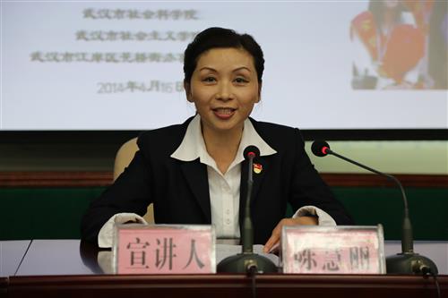 道德讲堂按唱一首歌、诵一段经典、看一部短片、听一个故事、作一番点评的流程进行。在讲故事环节,陈慧丽讲述了她在江岸政务中心“窗口”,多年如一日,心系窗口、情系百姓、爱岗敬业,为孤、老、病、残等特殊群体开辟“绿色通道”,创新工作方法,简化工作流程、提高工作效率的故事,倡导大家从身边小事做起,立足岗位上发挥光和热。演讲深深感染了现场的每一位听众,引起共鸣。在互动发言环节,市社会主义学院的干部和市社科院的专家学者均发言,高度概括和评价陈慧丽精神,纷纷表示要在今后在工作中,以陈慧丽为榜样,在平凡岗位作出不平凡成绩。