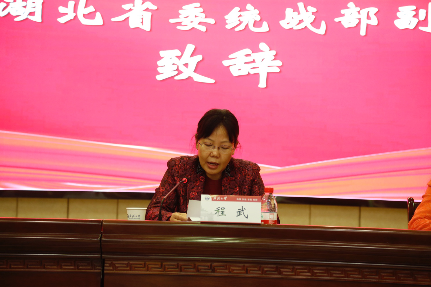 中共湖北省委统战部副部长程武在致辞中指出,要坚持理论研究的政治性,始终把坚持习近平总书记关于加强和改进统一战线工作的重要思想作为研究的根本重点;要坚持理论研究的时代性,坚持理论与实践相结合,形成符合实际的理论观点和政策建议;要坚持理论研究的广泛性,使党外知识分子领域理论与实践问题的研究更好的适应形势发展的需要。