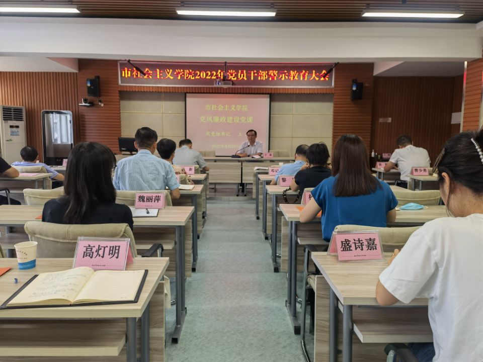 8月29日,市社会主义学院召开党员干部警示教育大会。市委统战部副部长、院党组书记王磊出席会议并讲授廉政党课,要求全体党员干部永葆清正廉洁政治本色,大力弘扬担当实干之风,以优异的成绩迎接党的二十大胜利召开。党组副书记、副院长杨学文主持会议。党组成员、副院长徐辉宣读《2022年市社会主义学院党风廉政建设宣传教育月活动方案》。