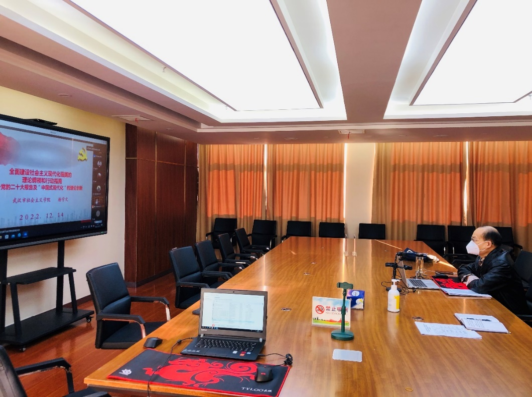杨学文代表市社院热烈欢迎全体参训学员,强调特殊时期,大家克服重重困难,相聚在线上学习,倍感不易,希望大家一如既往珍惜学习机会,学有所获。并以《全面建设社会主义现代化强国的理论纲领和行动指南——党的二十大报告及“中国式现代化”的理论创新》为题,为学员讲授开班第一课。陈茉代表市委统战部,从三个维度提出了具体要求,一是勤学苦练,增强本领,切实把思想和行动统一到党的二十大精神上来;二是双岗建功,学以致用,努力成为可堪大用能担重任的栋梁之才。三是勇于探索,刻苦钻研,努力成为武汉高质量发展的中坚力量。