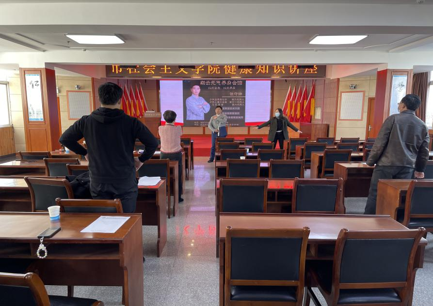 为进一步提高全院干部职工的健康意识,普及健康知识,改善办公室亚健康状态,2月27日下午院工会邀请了武汉翔云元气养生馆馆长、少林正骨急行术第六代传人、国家级武术六段、武术二级裁判张守钟老师作为讲师在501报告厅为全院职工展开干部职工健康知识讲座。