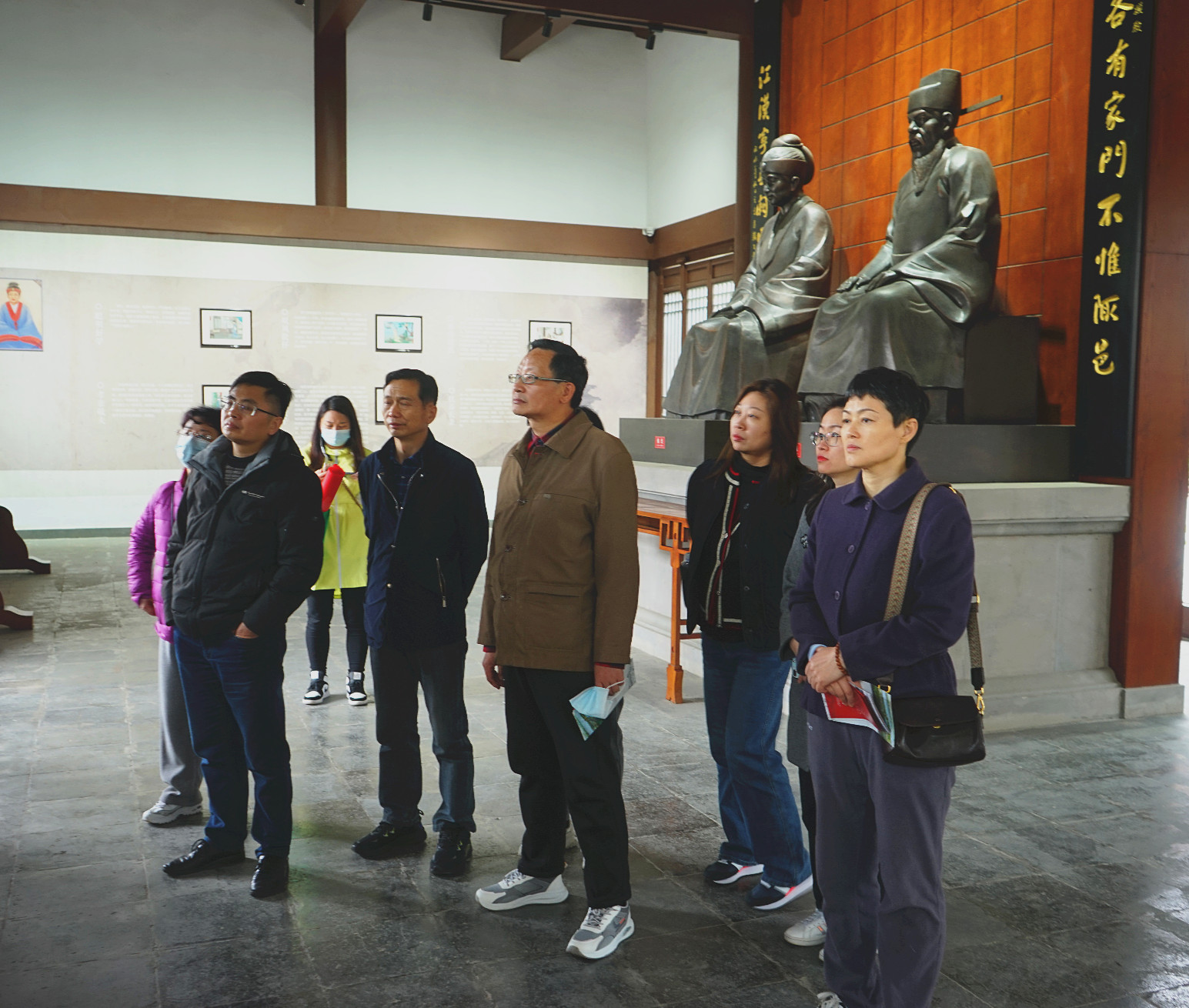 “二程”是北宋理学家程颢、程颐的简称,他们出生于湖北黄陂,幼年生活在黄陂。二程继承和发展孔孟儒学,创立了二程理学,经四传弟子、宋明理学集大成者--朱熹的完善发展,形成了历史上的“程朱理学”。二程和朱熹倡导格物致知、修齐治平,构建理学体系,终成一代圣贤,为古代读书人典范,影响深远。后人为了纪念二程所作的贡献,明朝景泰年间在黄陂建二程书院,民国年间曾毁于炮火,2018年重建。因二程、朱熹修身明道,治家严谨,后世有《程氏家训》《朱子治家格言》,影响教育后人,黄陂区纪委将其列为廉政教育基地。参观了二程雕像、启贤殿、二程祠、思源堂、立雪廊等后,大家表示,要认真学习其做学问的方法,抓好廉洁修身、廉洁齐家,自觉树立良好家风。