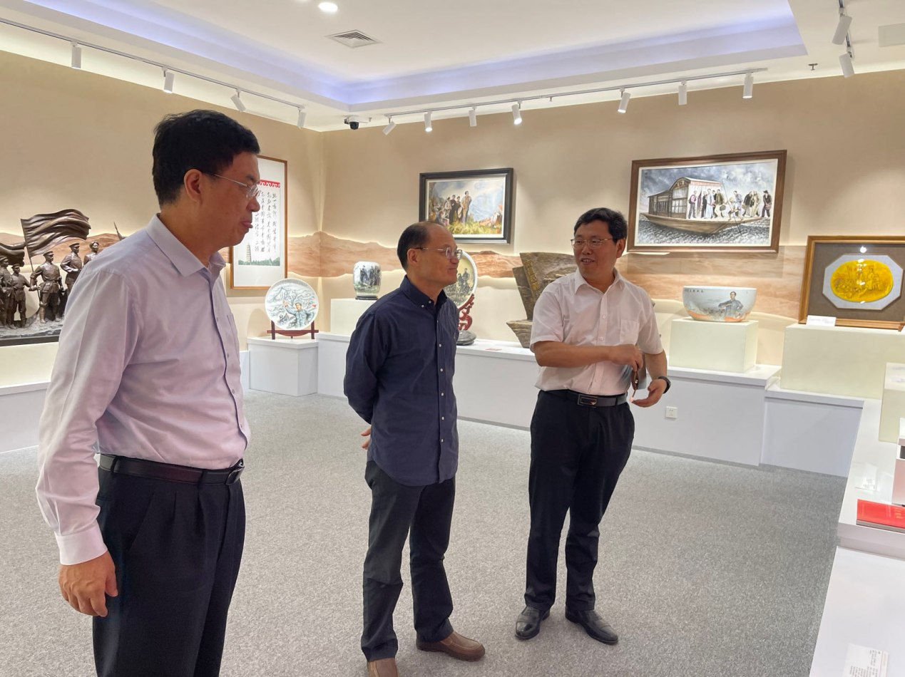 在山东省社会主义学院,党组成员、副院长解军先及院办公室、教务教研处等同志与调研组一行进行了深入交流座谈。双方交流了近年来在教学科研工作上的创新做法,并考察了校园设施,参观了校史展、庆祝建党100周年工艺品展等。