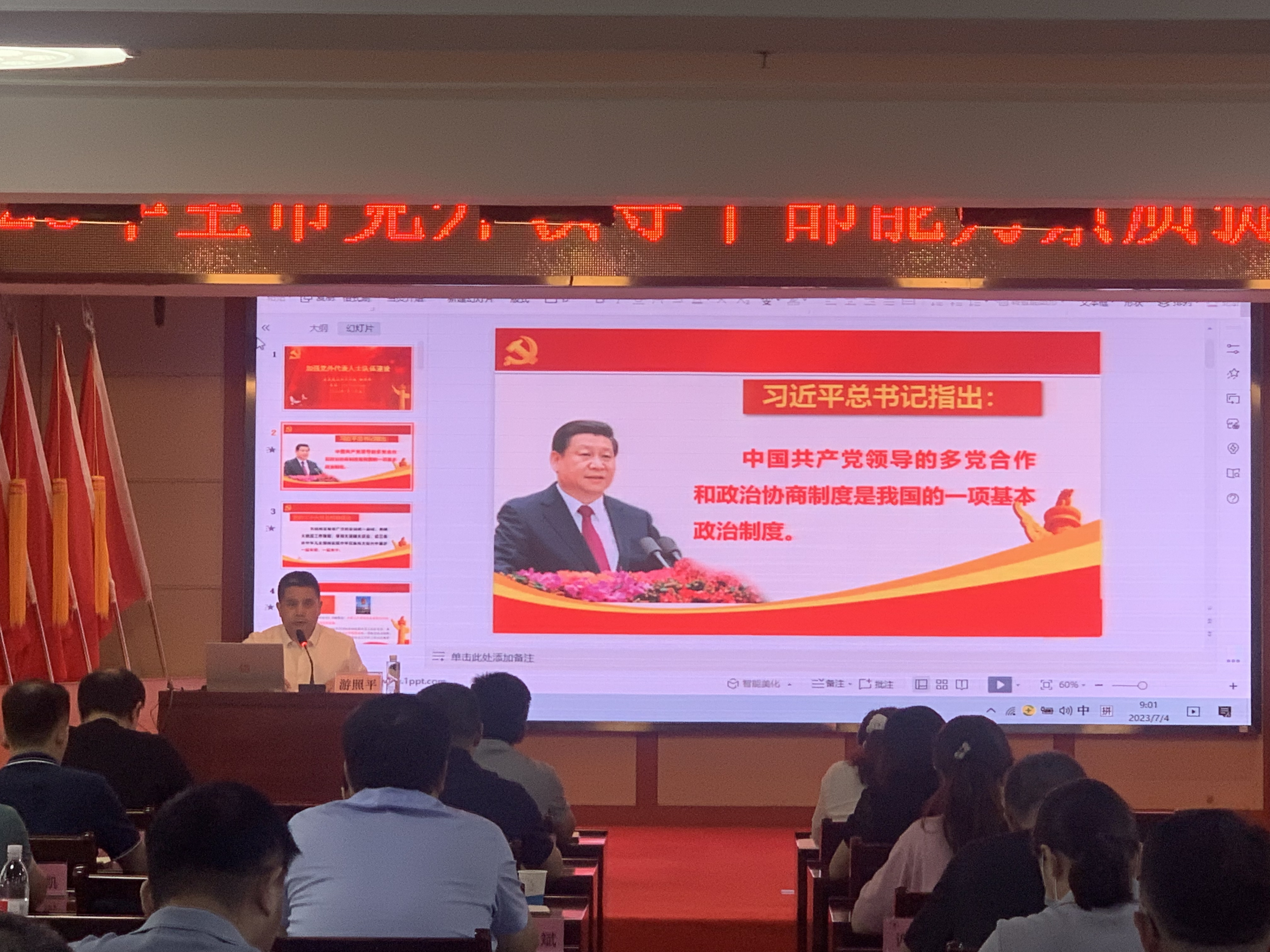 在教学设置上突出共识教育主线,紧密结合学习贯彻习近平新时代中国特色社会主义思想主题教育,针对党外干部特点,邀请市委统战部分管日常工作的副部长赵学龙同志解读“习近平总书记关于做好新时代党的统一战线工作的重要思想”,市社院党组副书记、副院长(分管日常工作)杨学文同志讲授“新时代新思想与中国式现代化”,市纪委监委二级监察官、二级巡视员、派驻市委统战部纪检监察组负责人李涛同志讲授“深入学习党的二十大精神 坚持以严的基调强化正风肃纪”等专题。通过理论辅导,引导学员深刻理解习近平新时代中国特色社会主义思想的世界观、方法论和贯穿其中的立场观点方法,锤炼忠诚干净担当的政治品格。