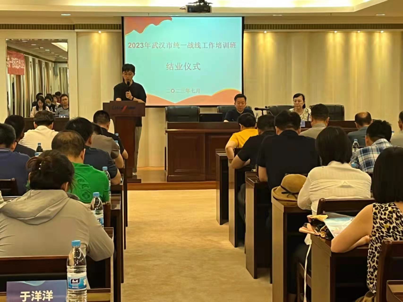 结业式上,市工商联党组成员、副主席杨松民代表本次班委作总结发言,他表示本次培训学习,既是一次思想政治教育,又是统战理论教育,也是工作实务教育,更是一次凝心聚力的同心行动。此次参训的学员们,来自于不同领域,分布在党政机关、社会团体、国有民营企业、科研院所以及教育系统。既有统战工作的老兵,也有刚刚入职的年轻统战新兵,还有无党派和新的社会阶层的人士,成员具有普遍代表性。在培训中,大家聚精会神学习思考,联系实际研讨交流,达到了统一思想认识,凝聚智慧力量,鼓舞干劲斗志,建立联络联通的目的。希望今后能够常走动,?;ザ?,?;疃弥魈饨逃钠趸?,进一步深化对习近平新时代中国特色社会主义思想科学体系和精髓要义的把握,进一步深化对这一思想的世界观、方法论和贯穿其中的立场观点方法的理解,做到学深悟透、融会贯通,更好担负起新时代新征程赋予统一战线的新使命新任务。