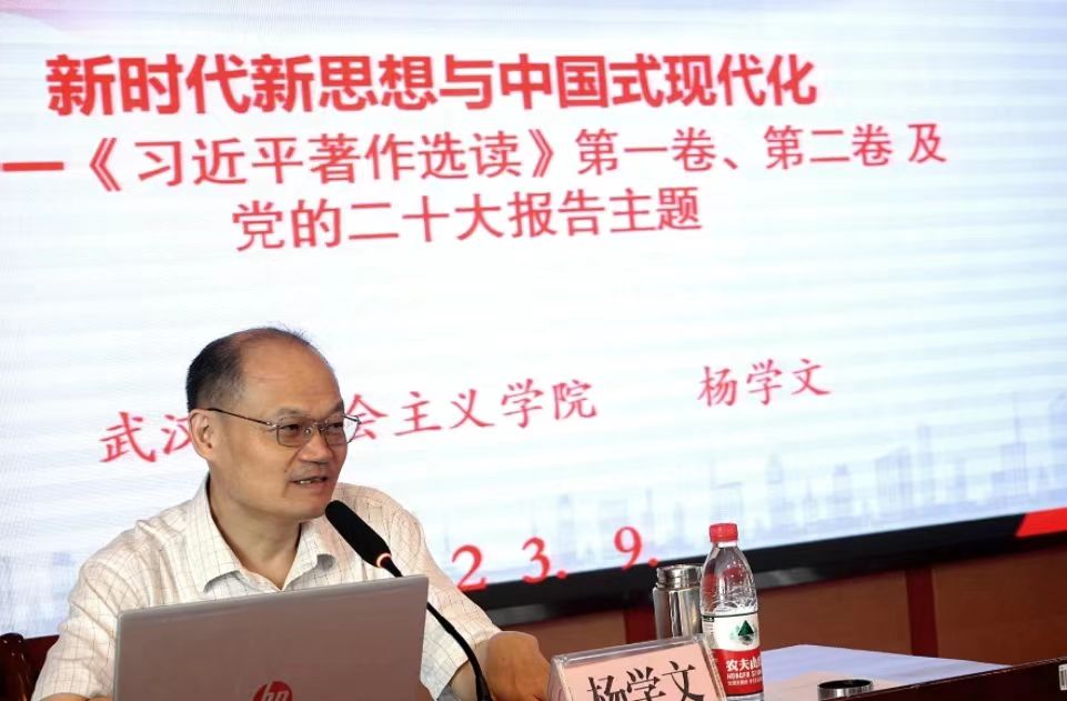 我院党组副书记、副院长(分管日常工作)杨学文围绕“新时代新思想与中国式现代化---《习近平著作选读》和党的二十大报告主题”,以大量生动鲜活的事例,阐述了新时代新思想的时代背景,中国式现代化的理论创新以及党的二十大战略部署等重要内容。