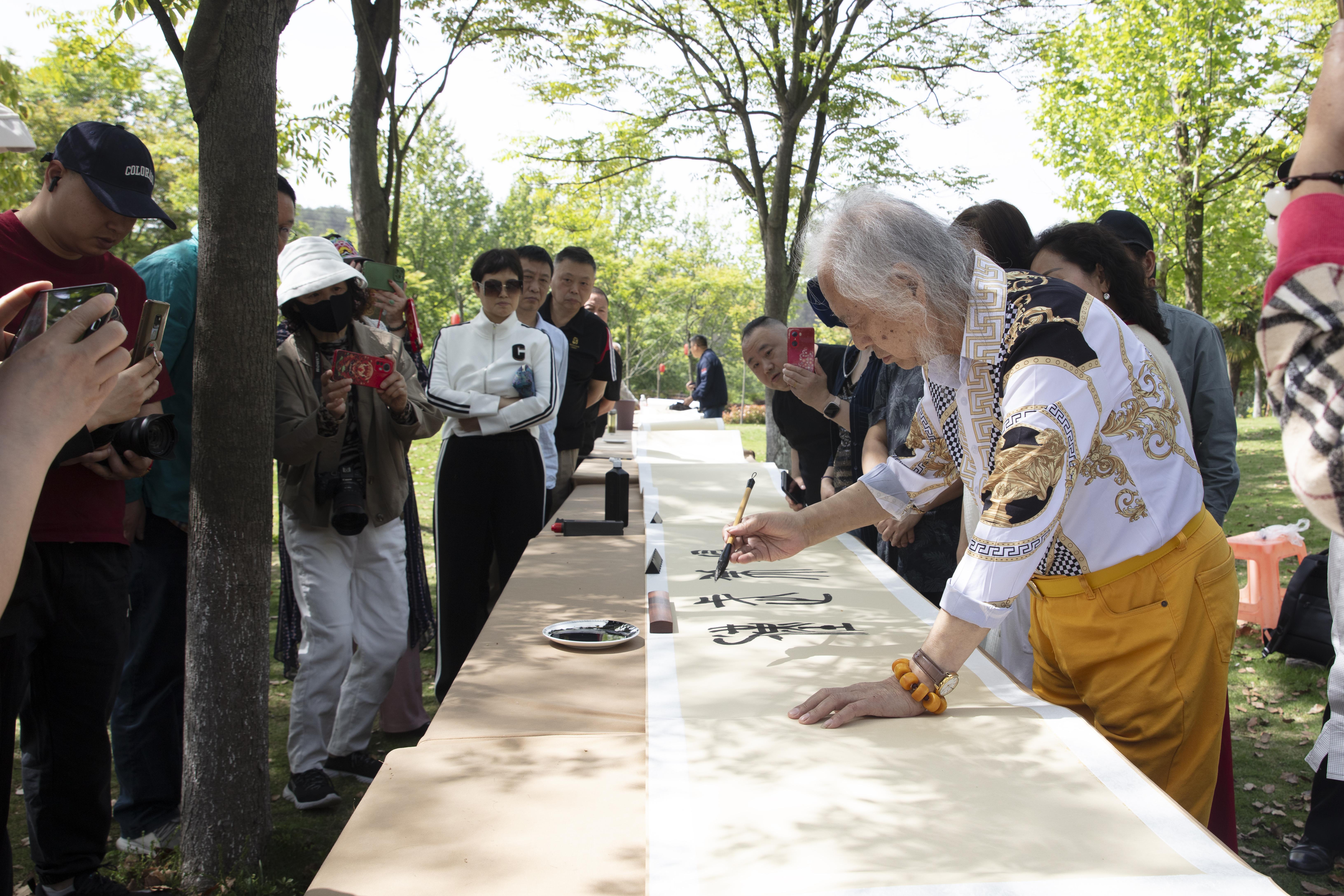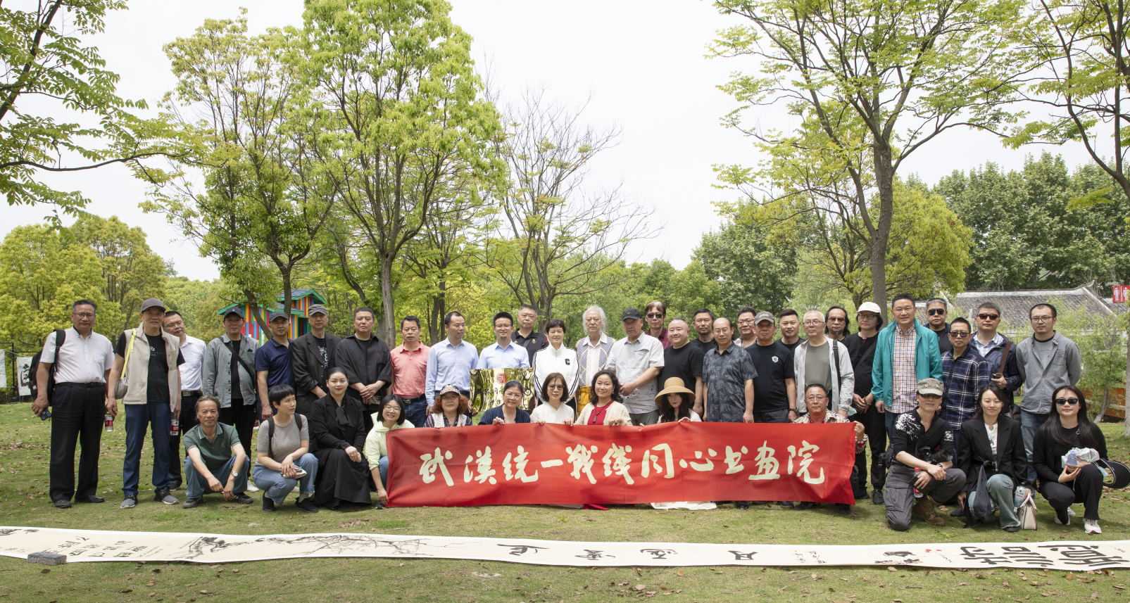 为庆祝新中国成立75周年、中国共产党领导的多党合作和政治协商制度确立75周年,采风设计了共同完成75米卷轴书画作品的特别策划。武汉统一战线同心书画院轮值院长、著名书法家、民革党员孔可立先生挥毫写下“寻美武汉 美美与共”八字篆书,为本次联合创作拉开了序幕。50多位书画艺术家纷纷献技,或挥毫泼墨、或笔走龙蛇、或丹青写意、或工笔白描,将一幅幅风格各异又主题鲜明的作品呈现在气势恢弘的75米卷轴上,融书法之美、国画之美、大余湾古村落之美、黄陂新时代乡村之美于一体,美美与共,不仅展现了书画家们非凡的艺术造诣,也展现出统一战线成员同心共筑中国梦、携手奋进新时代的爱国情怀。该作品计划在5月全市统战主题文化周以及9月庆祝新中国成立75周年书画展上展出。