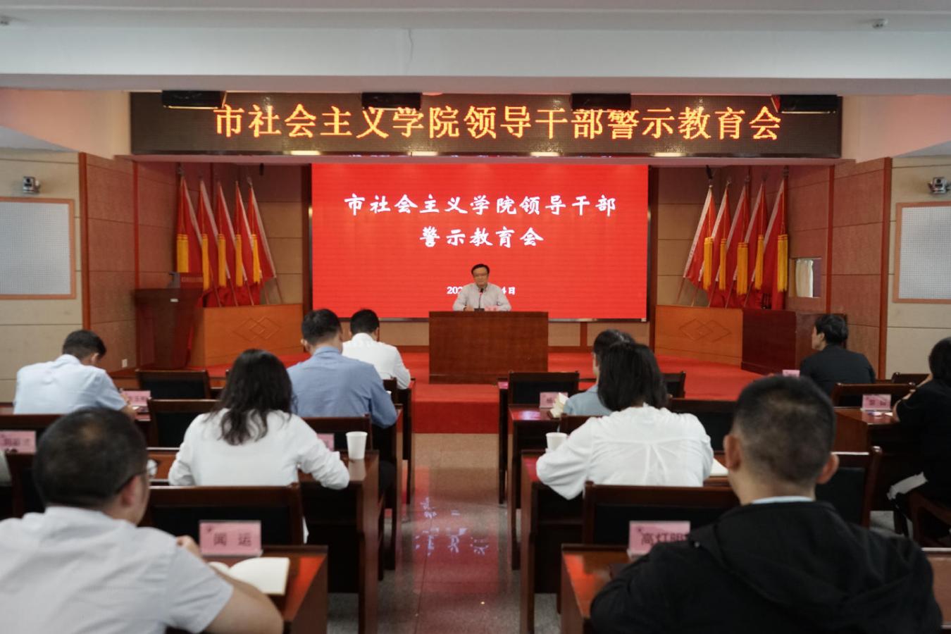5月14日,市社会主义学院召开深入贯彻中央八项规定精神学习教育专题警示教育会,市委统战部副部长、学院党组书记王磊出席会议并讲话,党组成员、副院长常亮、梁海涛,以及学院全体党员干部、退休党员代表参加会议?;嵋榧泄劭戳俗ㄌ饩窘逃?,深刻揭示“四风”隐形变异问题的危害,为党员干部敲响廉洁警钟。