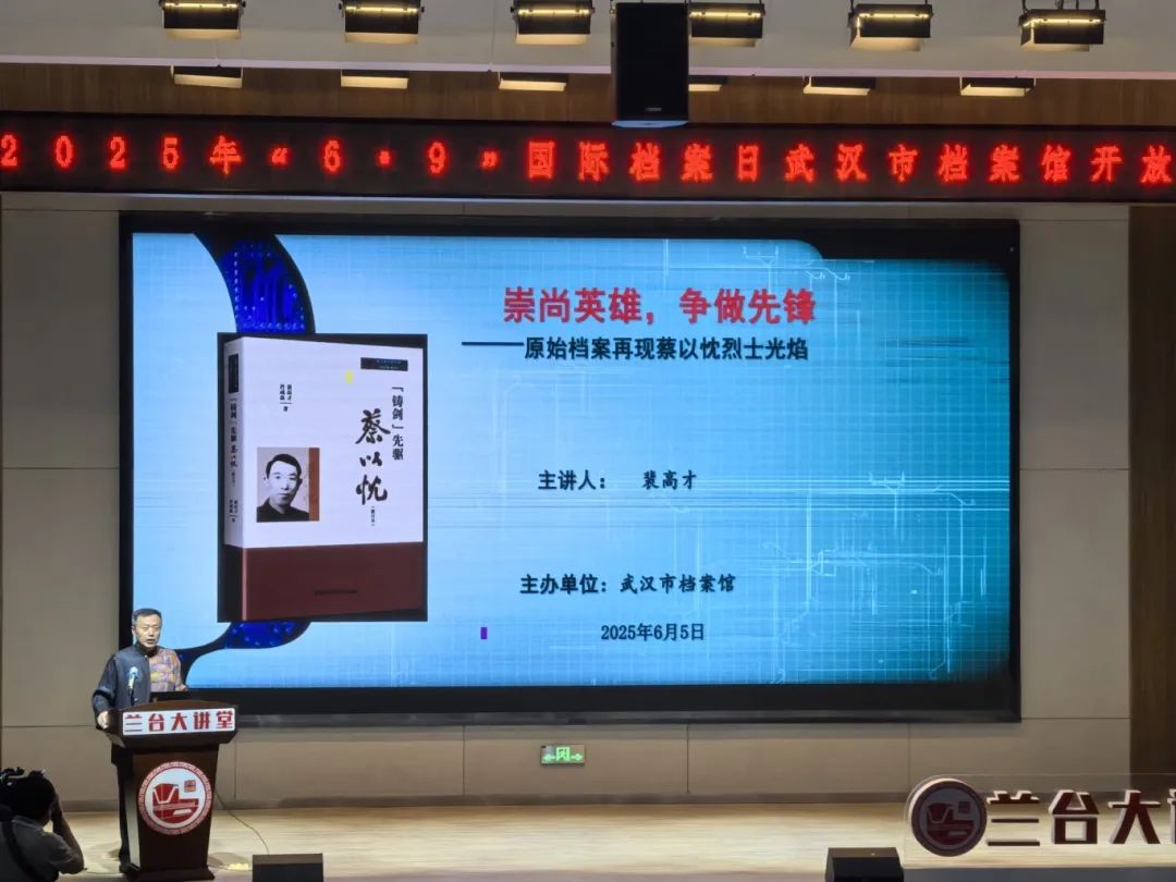 随后,大家聆听了“崇尚英雄,争做先锋:档案再现蔡以忱烈士光焰”专题讲座。中国作协会员裴高才结合创作烈士传记《“铸剑”先驱蔡以忱》和参与筹建武汉黄陂烈士纪念园“蔡以忱烈士事迹陈列展”搜集的丰富档案史料,生动讲述了蔡以忱烈士的光辉事迹。