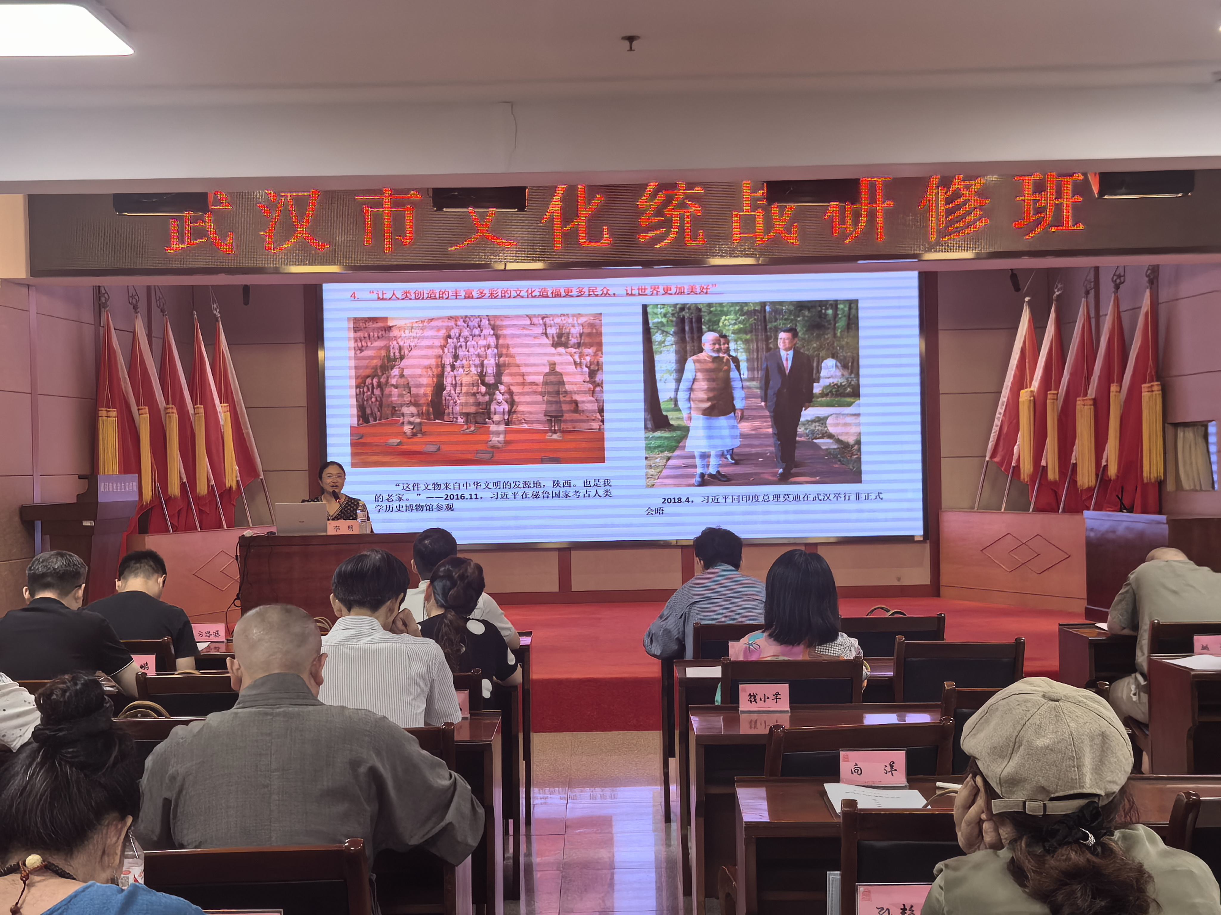 以文化为桥,打造统战教育新品牌。此次培训班是武汉市中华文化学院开展中华文化教育、研究和对外交流的系列工作之一。近年来,武汉市中华文化学院将文化统战工作纳入社院教育培训体系,深化中华文化学院品牌创新和机制创新,打造了武汉统一战线同心书画院、非遗传播交流中心、知音文化传播交流中心、知音海外文化艺术交流基地等一系列平台阵地,面向统战成员讲好中华文化故事;积极打造文化统战品牌,着力以品牌创建助推文化统战工作创新发展。参与举办了华夏奖·海峡两岸非遗文创设计大赛及大赛优秀作品巡展、非遗传承研修营,参与举办“寻美武汉”系列主题活动。文化统战研修班正是其中的重要组成部分,至今已举办第二期。