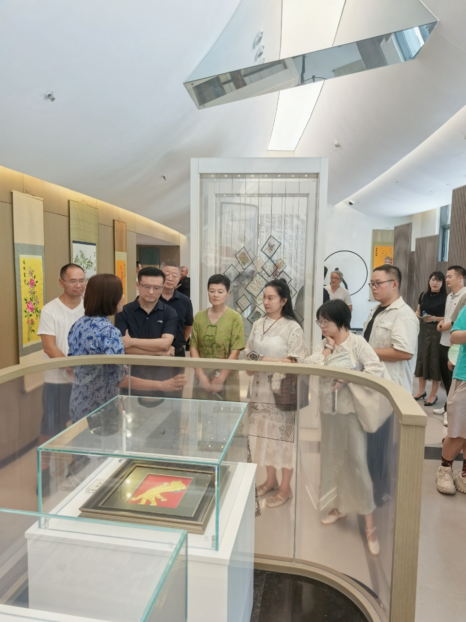 张岑杰(民进会员,湖北省艺术教育协会副会长)观石雕根雕展,虎座鸟架鼓的造型张力,汉派根雕的“因材赋形”,尽显楚艺“奇谲浪漫”的审美基因;安力大师解码非遗中的楚文化符号,让传统技艺与当代设计共振。此次活动更坚定我联结统战力量,以创新叙事激活楚文化生命力,为文化传承注入民进智慧。