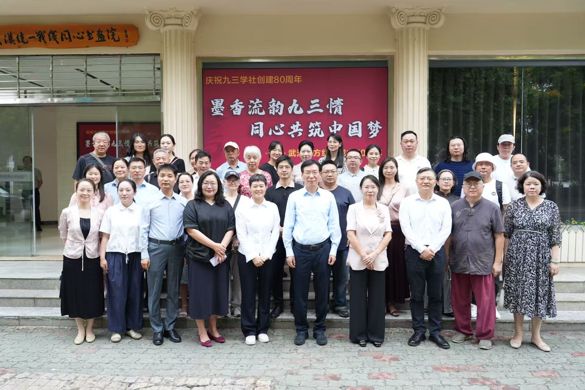 8月29日,“墨香流韵九三情 同心共筑中国梦”——庆祝九三学社创建80周年暨武汉地方组织成立70周年书画展在武汉统一战线同心书画院开展。市政协副主席、九三学社市委会主委、市社会主义学院(市中华文化学院)院长梁鸣出席并致辞。九三学社市委会专职副主委胡权、副主委上官莉娜,市社会主义学院(市中华文化学院)党组成员、副院长、武汉统一战线同心书画院执行院长梁海涛参加开幕式。