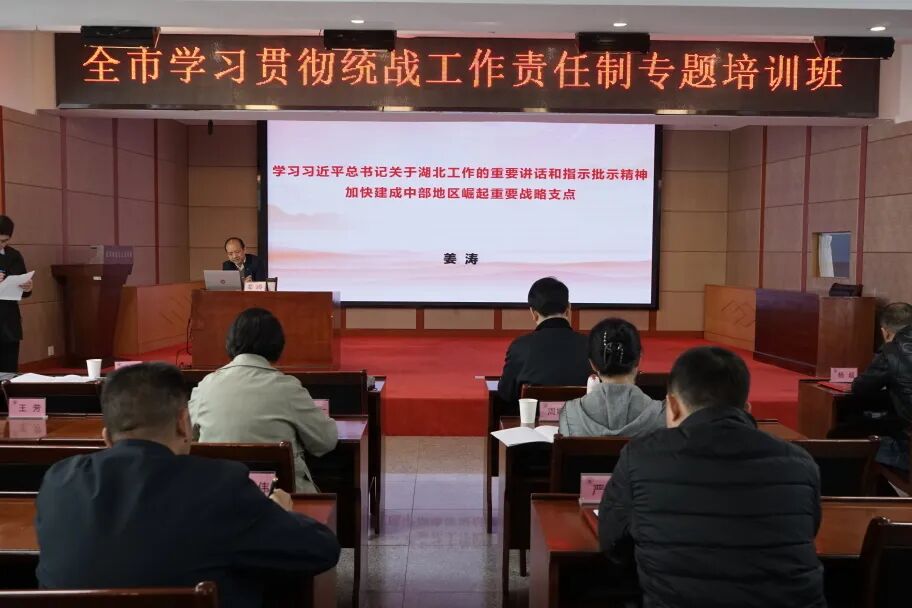 为深入学习贯彻习近平总书记关于做好新时代党的统一战线工作的重要思想,切实落实市委常委会要求,推动我市贯彻落实统战工作责任制“两张清单”落地见效,10月27日至31日,全市学习贯彻统战工作责任制专题培训班在武汉市社会主义学院举办。市委统战部副部长朱慧参加开班式并讲话,市社会主义学院副院长常亮作开班动员。市委统一战线工作领导小组成员单位联络员、各区(开发区、功能区)党委(工委)统一战线工作领导小组办公室有关负责同志共50人参加。