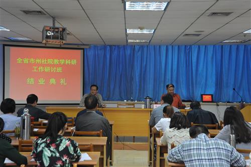这期培训班设定的主要目标有两个:探讨创建社院教学评估体系及搭建全省社院科研协作平台。这期班虽然时间紧凑,教学内容却十分丰富。有精品课的? 课堂讲授,有教学观摩评估,有教学和科研工作研讨交流,有情景模拟课,有案例分析课,还有省社院独创的“二人谈”教学法展示等,都给人带来新的感受,令人印象深刻。因为同期省社院正在举办为期两个月的“全省民主党派中青年骨干培训班”(简称“中青班”),所以,本期“师资班”还参加了“中青班”的有关教学环节和活动。通过短暂而充实的学习培训,提高了学员对“如何增强社院的教学科研能力和水平、提升政治共识教育培训实效”的认识,加深了对“教学决定社院生存、科研决定社院质量、资政决定社院地位”的社院教学与科研发展规律及这两项社院主业所承担的职能定位(“教学立院,科研强院”)的理解,更进一步提升了学员作为社院教研人员自身的政治责任感和使命感。社院作为一所正规的政治学院,而非一般的培训中心,就要求社院必须要搞科研,要从事统一战线理论及方针、政策的研究,争当“统战智库”,牢固树立 “科研强则社院强”的办院理念。