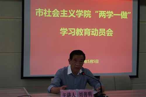 第三,要加强组织领导,确保学习教育取得实效。要坚持领导带头市社院党组书记刘善明为党员干部职工上党课、以上率下,以形成上行下效、整体联动的总体效应;要注意区分层次、分类指导,从社院实际出发,有针对性的提要求、定措施,使每个党员都能受教育、有提高;要坚持抓在日常、严在经常,要突出经常性教育的特点,用好日常的教育途径、教育方式,推动党的思想政治建设常态化、制度化。