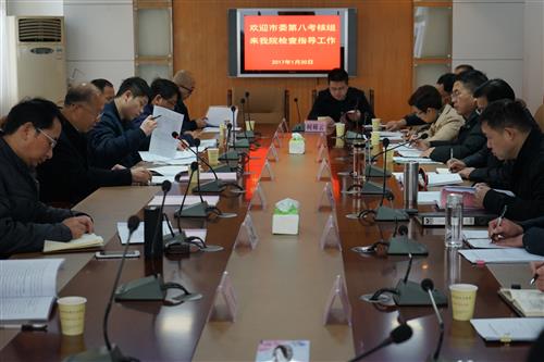 1月20日上午,市委第八考核组到我院进行市管领导班子和领导干部年度考核,市委第八考核组组长、市法院政治部主任、党组成员胡文华带领考核组一行11人来到院组织考核,会上,胡组长首先作了考核动员,明确了考核要求、标准和注意事项,接着,党组书记刘善明代表领导班子及个人进行了述职,并对领导班子及成员进行了民主测评。最后,考核组人员对我院2016年度党建责任目标、党风廉政建设责任制、意识形态工作责任制、法治城市建设、社会治安综合治理、市管领导班子和领导干部年度考核工作等6项台账资料进行综合检查。