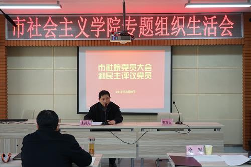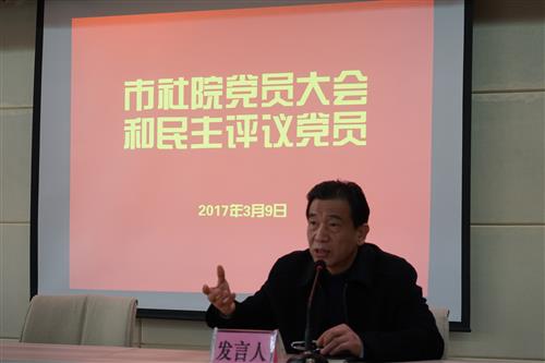 为贯彻落实市委组织部下发的《关于在全市“两学一做”学习教育中召开专题组织生活会和开展民主评议党员实施方案》的通知精神,市社院党支部于3月9日召开全体党员大会对党员和院党支部班子开展民主评议。市社院党支部全体成员参加会议,党外干部职工受邀列席会议。
