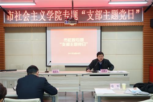 3月23日,市社会主义学院党支部举行专题“支部主题党日”活动,会议由院党组成员、副院长、院党支部书记徐军主持。