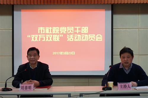 为了落实市委、市政府关于开展“万名处(科)级干部联系服务万家小微企业、万名机关党员干部联系服务万家困难群众”活动的通知精神,3月23日下午,市社院召开了全体党员干部大会,就“双万双联”活动进行动员部署。