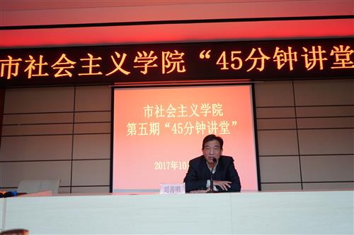 会上,院党组书记刘善明同志传达了市委常委、统战部部长曹裕江同志于10月18日下午在市委统战部领导班子成员和市直统战系统各单位负责人学习党的十九大报告座谈会上提出的“五点要求”,强调要按照曹部长的指示,“把学习党的十九大精神作为当前和今后首要的政治任务”抓紧、抓实、抓好。一是要思想上高度重视,社院作为统一战线性质的政治学院,肩负着通过学习、宣讲党的十九大精神,引导党外人士增进共识、和中共中央保持一致的重要责任和光荣使命,要打好学的基础,联系思想实际和工作实际主动学、广泛学、深入学,每个同志要认真研读习近平总书记报告原文,为贯彻落实打好基础。二是要认真组织活动,按照中央和省市委的要求,以党支部为依托,分阶段、分主题抓好学习活动,谋划好重要活动,每个处室、每个同志要结合党的十九大精神,联系工作实际,积极对接,展开原创性思考,自觉贯彻落实,为提升办学质量、促进学院发展,推进全市统一战线工作献计出力。