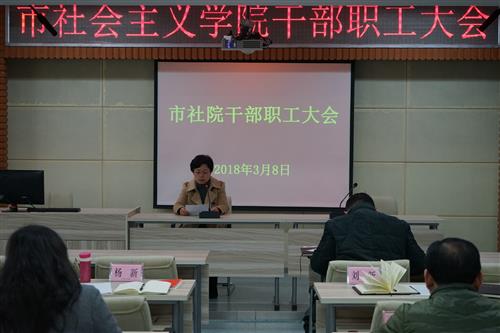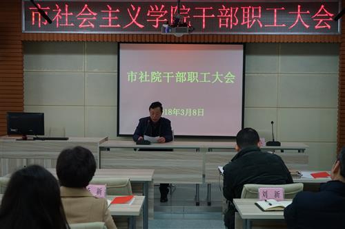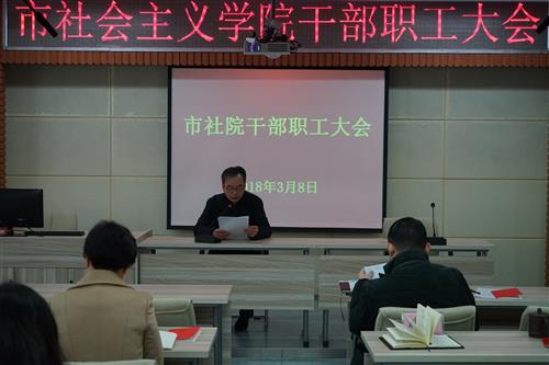 3月8日上午,市社院召开2017年度干部职工考核测评会,党组成员、副院长徐军主持会议,全体干部职工参加。