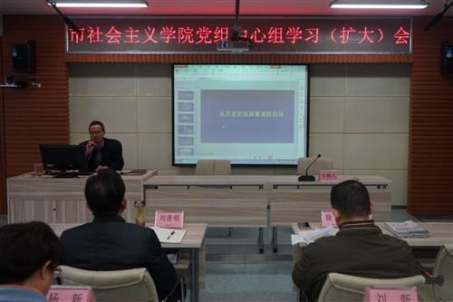11月15日下午,市社院党组书记刘善明主持召开党组中心组学习(扩大)会,党组成员、副院长徐辉向全院干部职工作“从历史的选择看道路自信”专题党课。