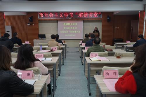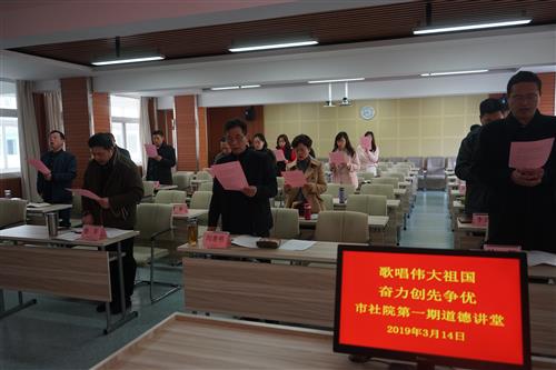 为了庆祝新中国成立70周年,弘扬社会主义核心价值观,发挥市社院”道德讲堂”的教化育人作用,提升全院干部职工思想道德素质,将“两学一做”教育常态化、制度化。3月14日上午,市社会主义学院举办了以“歌唱伟大祖国奋力创先争优”为主题的第一期道德讲堂。院党组书记刘善明,院党组成员、副院长徐辉、徐军及全体干部职工参加了本次活动。