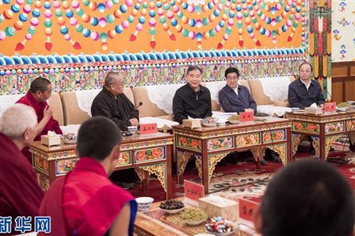 汪洋强调,藏区工作的着眼点和着力点是维护祖国统一、加强民族团结。要全面贯彻党的民族政策,努力创造各族群众共居、共学、共事、共乐的社会条件,促进各民族交往交流交融,让各民族在中华民族大家庭中手足相亲、守望相助。要坚持党的宗教工作基本方针,坚持我国宗教中国化方向,积极引导宗教与社会主义社会相适应。要加强党对宗教工作的领导,引导宗教界弘扬爱国主义优良传统,深入挖掘教义教规中有利于社会和谐、时代进步、健康文明的内容,自觉遵守国家法律法规,切实加强教风建设和寺庙内部管理,促进宗教健康发展。