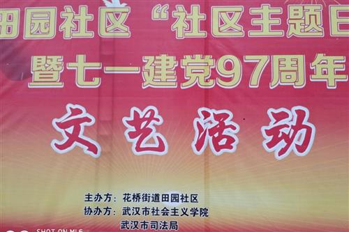 2018年6月28日晚。由花桥街田园社区主办、武汉市社会主义学院等几家共建单位合办的“社区主题日”暨七一建党97周年文艺活动,在田田广场地铁出口隆重举行。