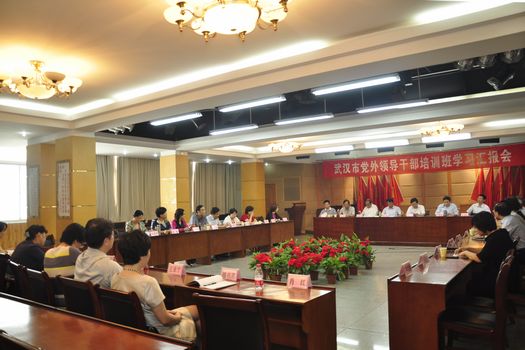 ?9月26日上午,市委常委、统战部部长张学忙,市委常委、组织部部长胡志强来到我院,参加武汉市党外领导干部培训班学习汇报会,与学员进行座谈。? ?