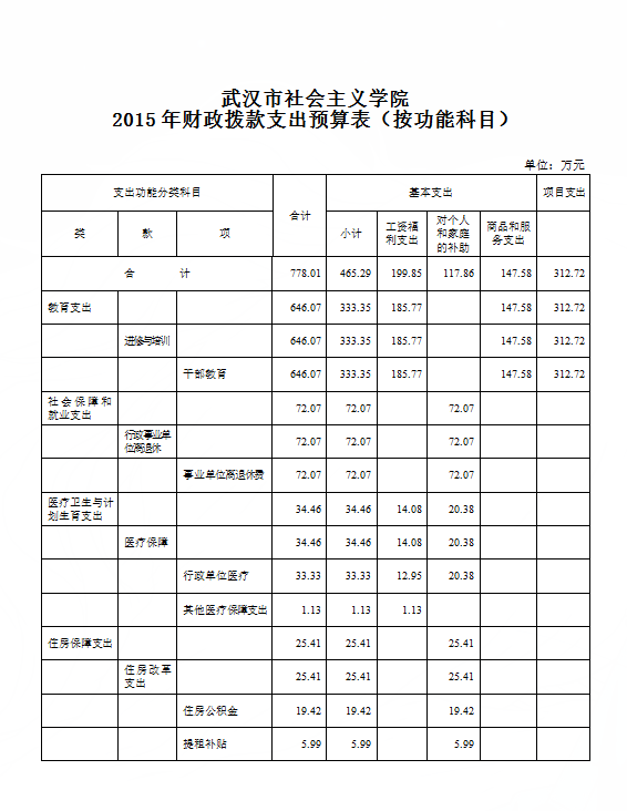 武汉市社会主义学院 2015年财政拨款支出预算表(按功能科目)