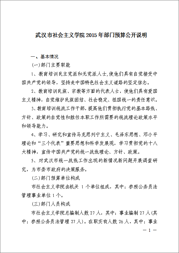 武汉市社会主义学院2015年部门预算公开说明