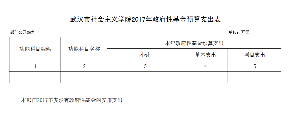 武汉市社会主义学院2017年政府性基金预算支出表