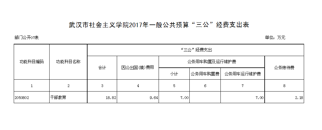 武汉市社会主义学院2017年一般公共预算“三公”经费支出表