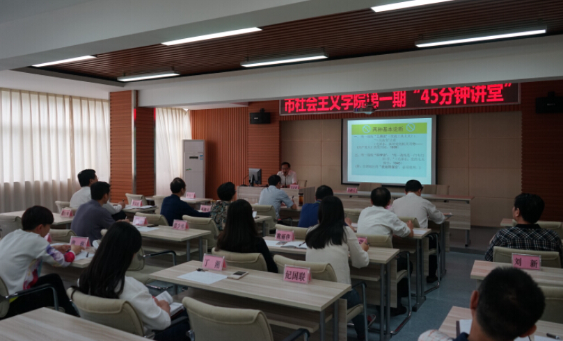 为充分发挥我院作为全市统一战线人才培养、理论研究、政策宣传三个基地的作用,推动学习型机关建设,营造学习、干事、创业的良好氛围,我院党支部于2015年5月8号下午组织开展了市社院2015年度第一期“45分钟讲堂”活动。