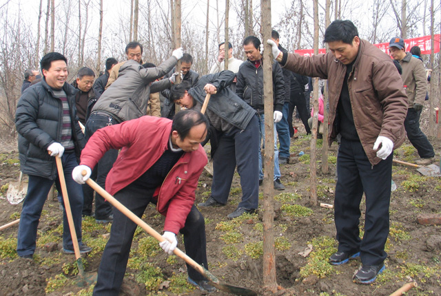 植树现场,院党组书记芦新建,副院长宋靖、王云洁、张志勇,副巡视员杨庆华,花桥街副主任肖琼和干部群众挥锄抡铲、培土浇水,种下一株株水杉树苗,现场一派热火朝天的繁忙景象。经过一上午的紧张劳动,一排排新栽下树苗昂然挺立,在微微的春风中展现着蓬勃生机。