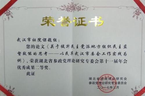 武汉社院致力民主党派民主监督研究成果颇丰 ——4篇论文在第七届参政党建设论坛上获奖